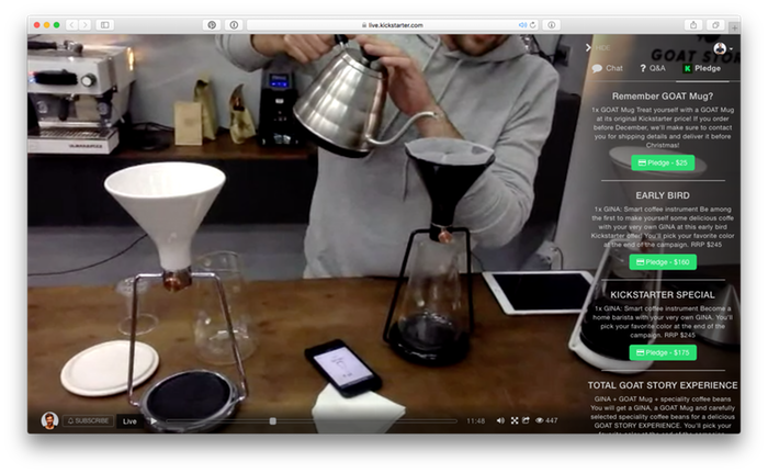 Add Kickstarter to the list of websites integrating live video streaming.