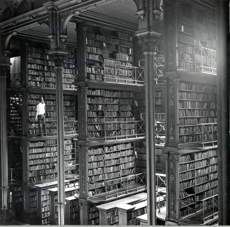 The photograph above reminded me so much of the smell and the feel, the physical sense of being in the stacks at Stetson Library. It was musty, but it was quiet, almost Cathedral like, And very much as a Cathedral, by its sheer existence, creates an inherent revernce for God so too did the cathedral like quality of the old Stetson Library create a physical veneration for books and knowledge.
